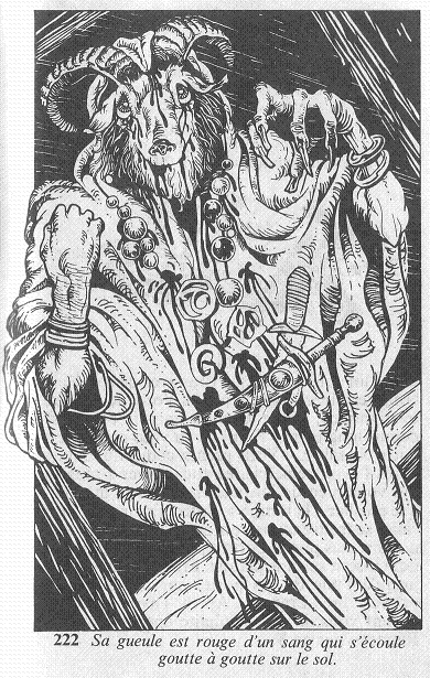 car sa tête est celle d'un bouc ! Sa gueule est rouge d'un sang qui