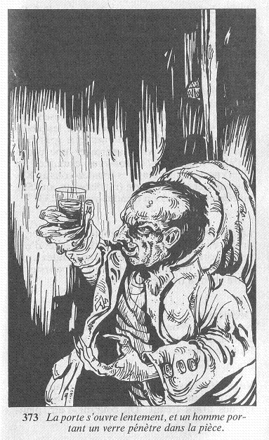 La porte s'ouvre lentement, et un homme portant un verre pénètre dans la